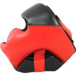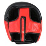 Kask wykonano z wysokiej jakości skóry bydlęcej o grubości 0,09 cm, a wewnątrz zastosowano miękki, przyjemny w dotyku materiał amara. Dzięki systemowi regulacji – szerokim rzepom z tyłu oraz górnemu zapięciu na klamrę – kask można precyzyjnie dopasować do głowy, co zwiększa komfort i stabilność podczas treningu.