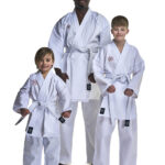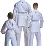 Zestaw zawiera kurtkę, spodnie i biały pas, a dodatkowo elastyczność i trwałość sprawiają, że to kimono Gi to niezbędne wyposażenie każdego karateki na ich treningowej drodze.