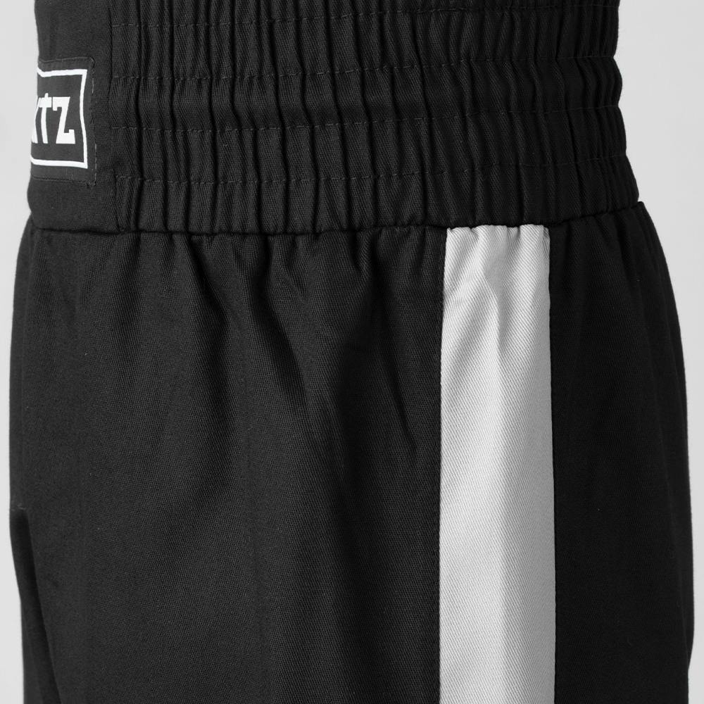 Wykonane z mieszanki poliestru i bawełny (65% / 35%), zapewniają idealne połączenie trwałości i komfortu. Dzięki specjalnemu wszytemu klinowi (gusset) spodnie gwarantują pełen zakres ruchu – bez ograniczeń, bez kompromisów. To idealne rozwiązanie przy wysokich kopnięciach, wykrokach czy dynamicznych zmianach pozycji.